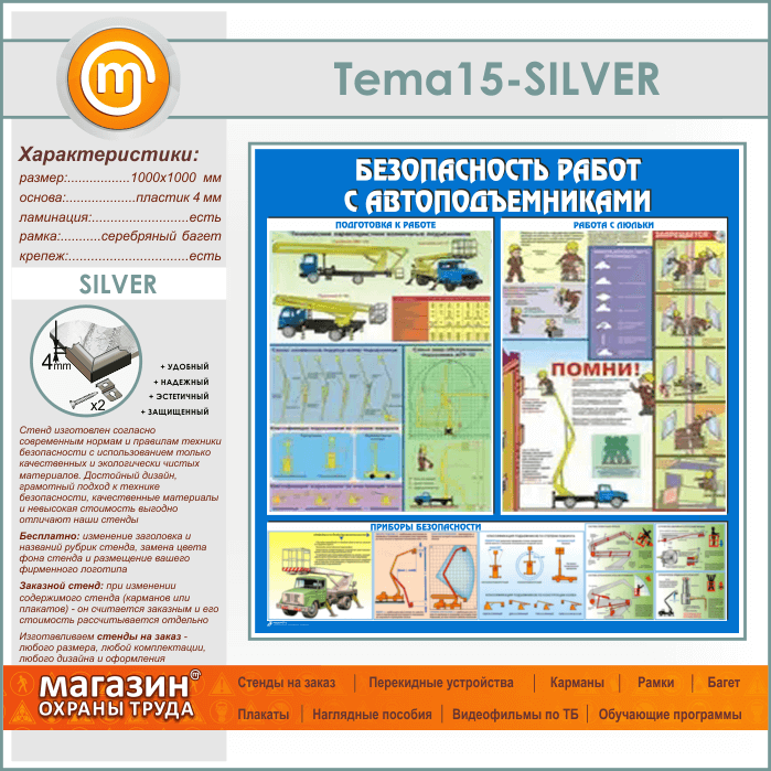 Стенд «Безопасность работ с автоподъемниками» (TM-15-SILVER) в Ачинске купить