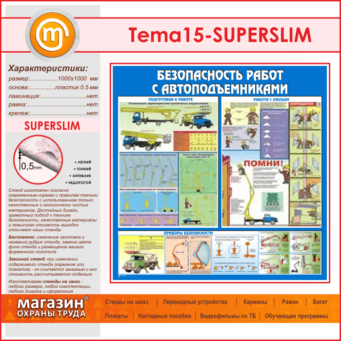 Стенд «Безопасность работ с автоподъемниками» (TM-15-SUPERSLIM) в Ачинске купить