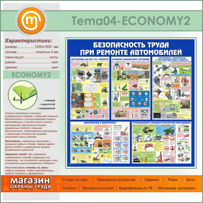 Стенд «Безопасность труда при ремонте автомобилей» (TM-04-ECONOMY2) в Ачинске купить