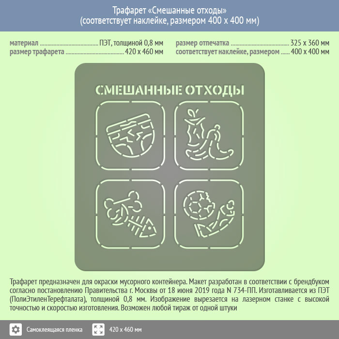 Трафарет «Смешанные отходы» (соответствует наклейке, размером 400х400 мм) в Ачинске купить