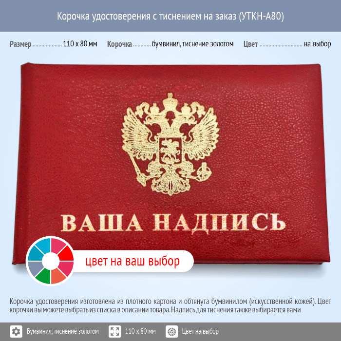Бланк удостоверения с тиснением на заказ, цвет на выбор, 110 x 80 мм (УТКН-А80) в Ачинске купить