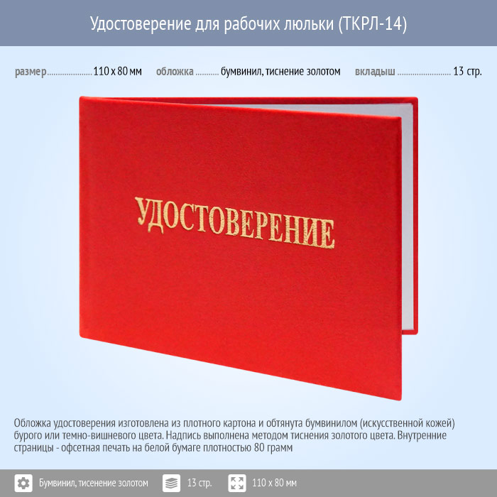 Бланк удостоверения для рабочих люльки (ТКРЛ-14) в Ачинске купить