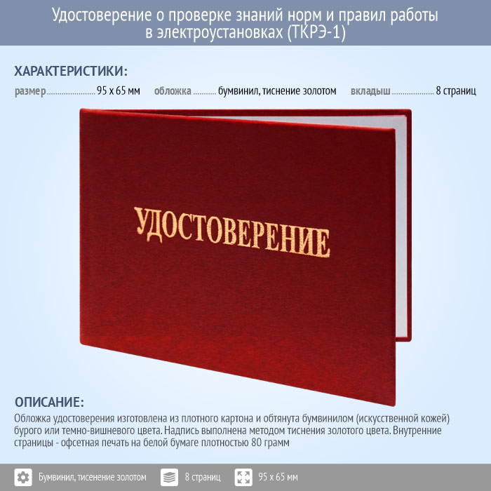 Бланк удостоверения о проверке знаний норм и правил работы в электроустановках (новый образец 2021 года) (ТКРЭ-1) в Ачинске купить