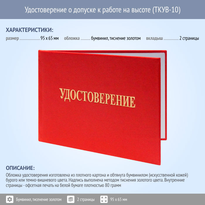 Бланк удостоверения о допуске к работе на высоте (ТКУВ-10) в Ачинске купить