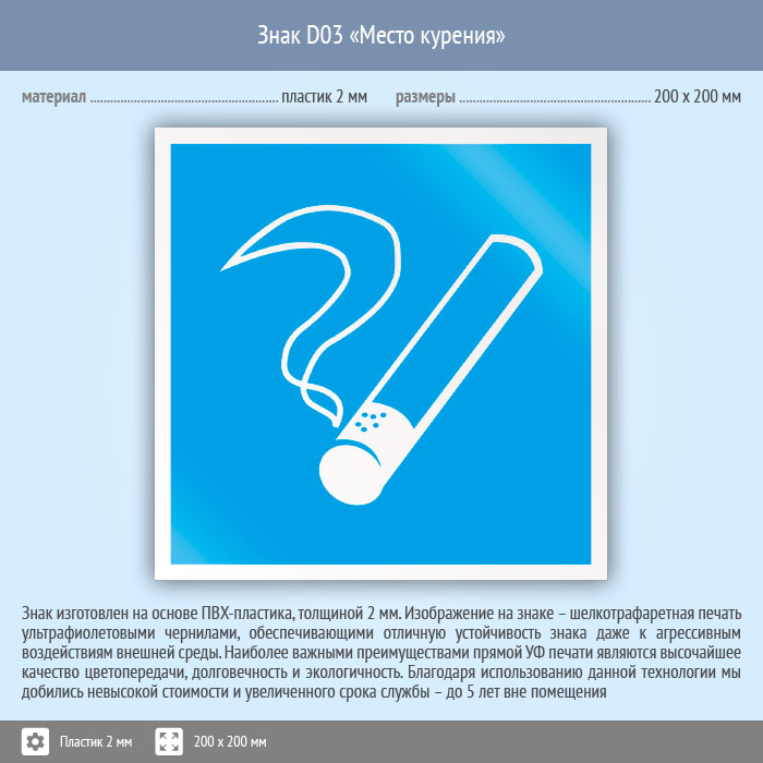 Знак D03 «Место курения» (пластик, 200х200 мм) в Ачинске купить