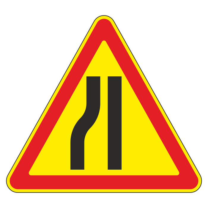 Дорожный знак 1.20.3 «Сужение дороги» (временный) (металл 0,8 мм, IV типоразмер: сторона 1500 мм, С/О пленка: тип А коммерческая) в Ачинске купить