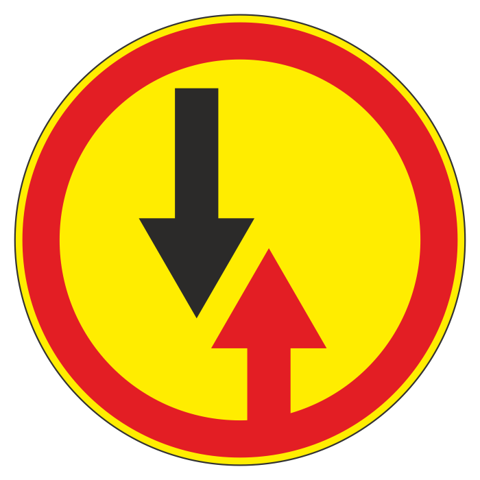 Дорожный знак 2.6 «Преимущество встречного движения» (временный) (металл 0,8 мм, I типоразмер: диаметр 600 мм, С/О пленка: тип Б высокоинтенсивная) в Ачинске купить
