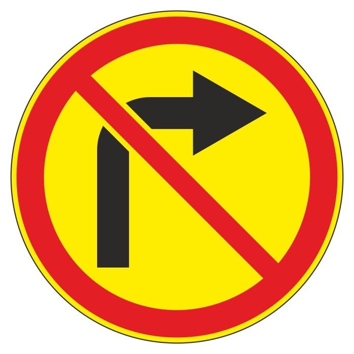 Дорожный знак 3.18.1 «Поворот направо запрещен» (временный) (металл 0,8 мм, III типоразмер: диаметр 900 мм, С/О пленка: тип А коммерческая) в Ачинске купить