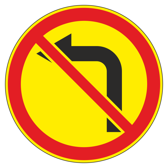 Дорожный знак 3.18.2 «Поворот налево запрещен» (временный) (металл 0,8 мм, II типоразмер: диаметр 700 мм, С/О пленка: тип В алмазная) в Ачинске купить