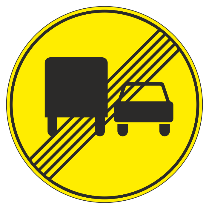 Дорожный знак 3.23 «Конец зоны запрещения обгона грузовым автомобилям» (временный) (металл 0,8 мм, II типоразмер: диаметр 700 мм, С/О пленка: тип В алмазная) в Ачинске купить