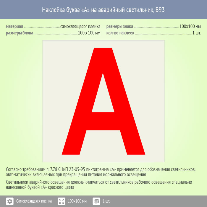 Наклейка буква «А» на аварийный светильник, B93 (пленка, 100х100 мм) в Ачинске купить