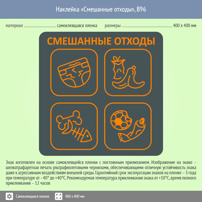 Наклейка на бак «Смешанные отходы», B96 (пленка, 400х400 мм) в Ачинске купить