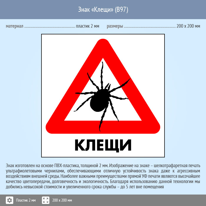 Знак «Клещи», B97 (пластик, 300х300 мм) в Ачинске купить