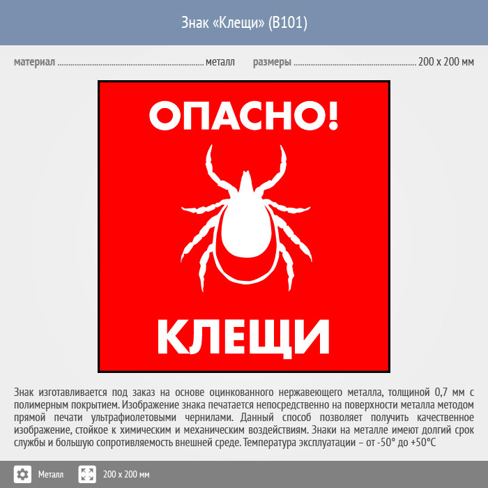 Знак «Опасно! Клещи», B101 (металл, 200х200 мм) в Ачинске купить
