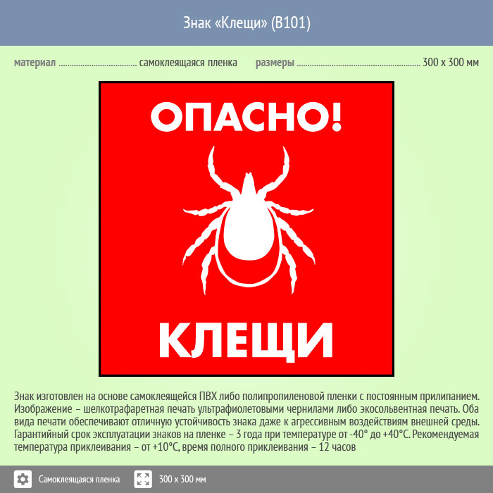 Знак «Опасно! Клещи», B101 (пленка, 300х300 мм) в Ачинске купить