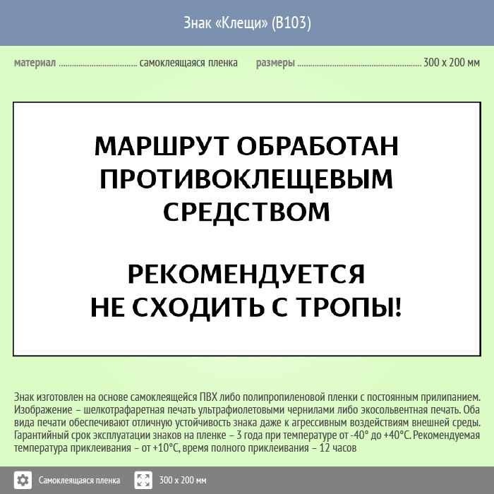 Знак «Клещи», B103 (пленка, 400х300 мм) в Ачинске купить