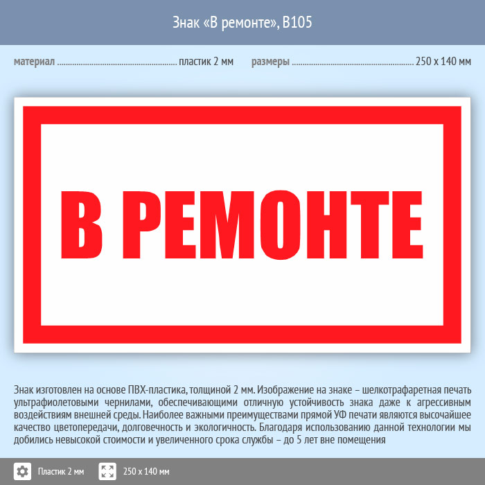 Знак «В ремонте», B105 (пластик, 250х140 мм) в Ачинске купить