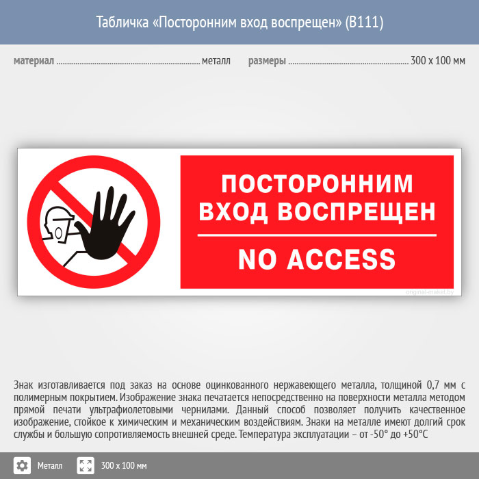 Табличка «Посторонним вход воспрещен», B111 (металл, 300х100 мм) в Ачинске купить