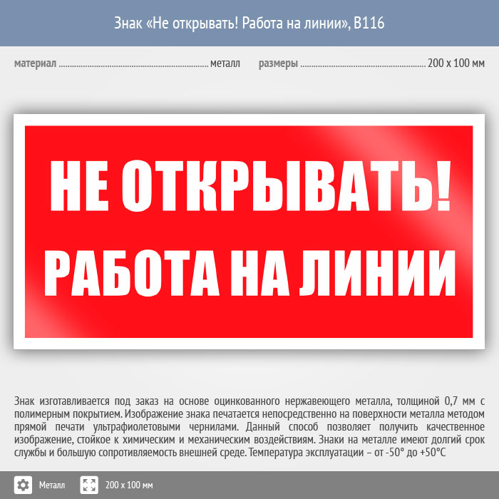 Знак «Не открывать! Работа на линии», B116 (металл, 200х100 мм) в Ачинске купить