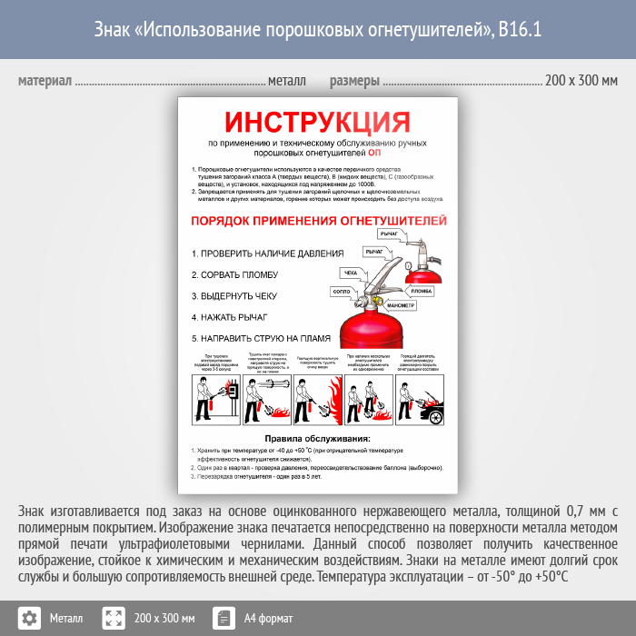 Знак «Использование порошковых огнетушителей», B16.1 (металл, 200х300 мм) в Ачинске купить