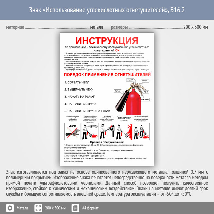Знак «Использование углекислотных огнетушителей», B16.2 (металл, 200х300 мм) в Ачинске купить