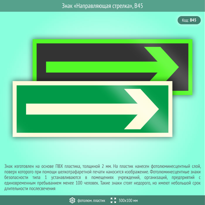 Знак «Направляющая стрелка», B45 (фотолюминесцентный пластик, 300х100 мм) в Ачинске купить