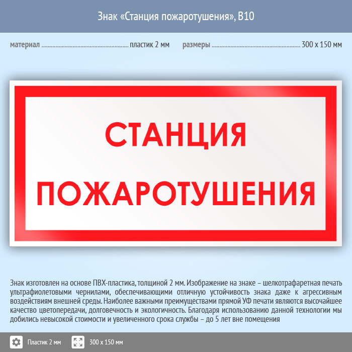 Знак «Станция пожаротушения», B10 (пластик, 300х150 мм) в Ачинске купить