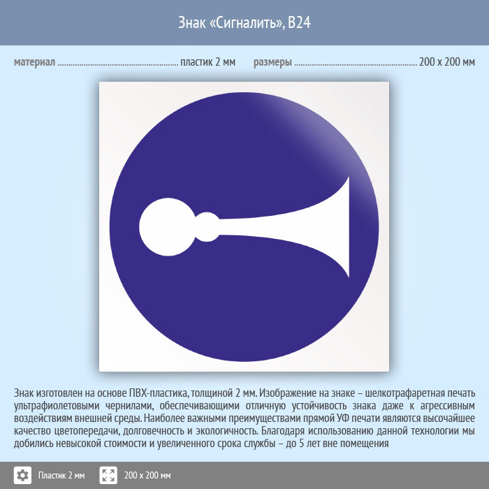 Знак «Сигналить», B24 (пластик, 200х200 мм) в Ачинске купить