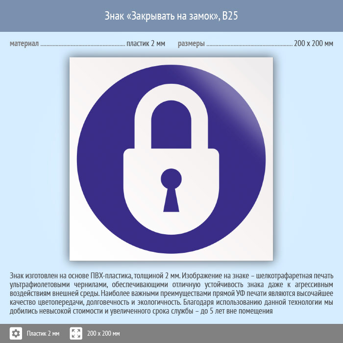 Знак «Закрывать на замок», B25 (пластик, 200х200 мм) в Ачинске купить