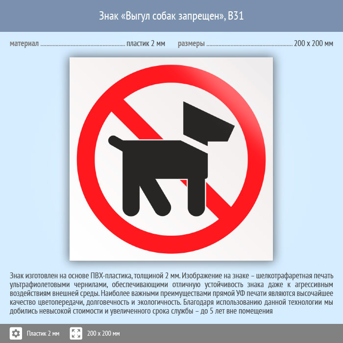 Знак «Выгул собак запрещен», B31 (пластик, 200х200 мм) в Ачинске купить