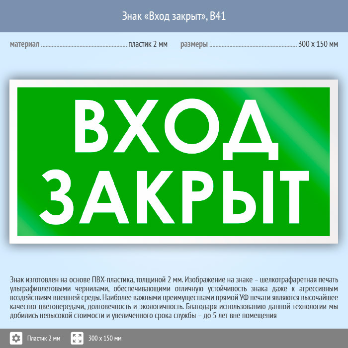 Знак «Вход закрыт», B41 (пластик, 300х150 мм) в Ачинске купить