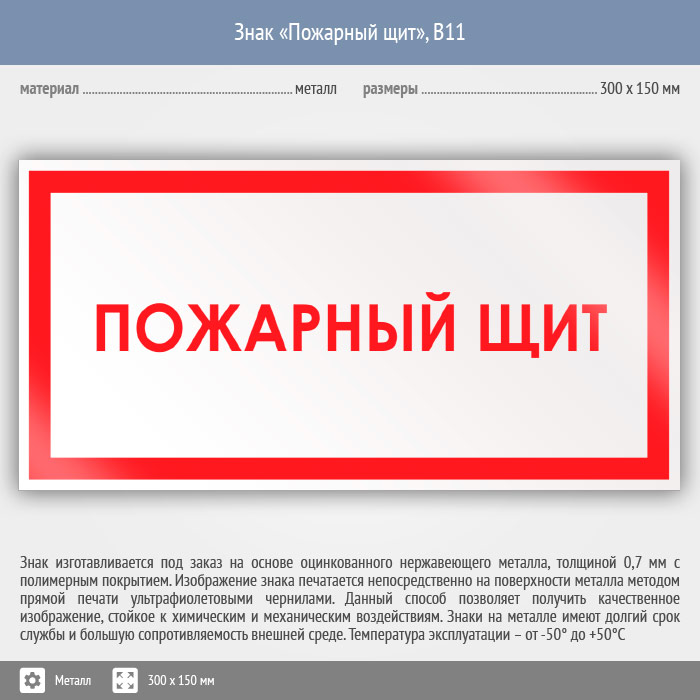 Знак «Пожарный щит», B11 (металл, 300х150 мм) в Ачинске купить