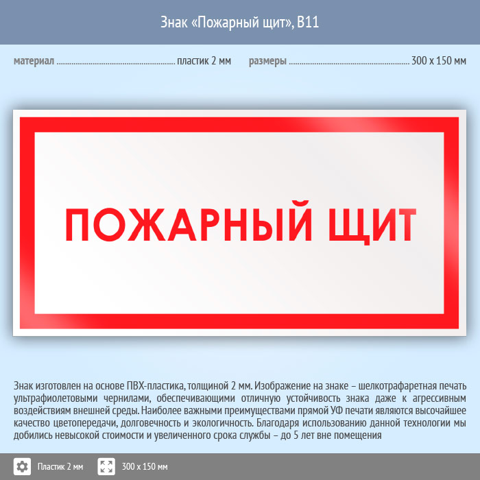 Знак «Пожарный щит», B11 (пластик, 300х150 мм) в Ачинске купить