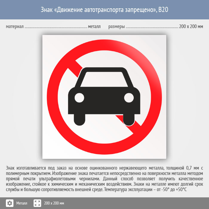 Знак «Движение автотранспорта запрещено», B20 (металл, 200х200 мм) в Ачинске купить