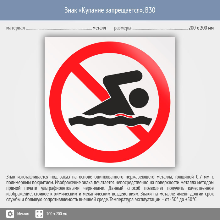 Знак «Купание запрещено», B30 (металл, 200х200 мм) в Ачинске купить