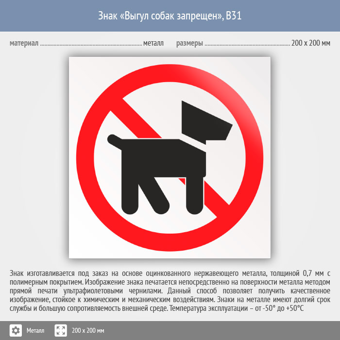 Знак «Выгул собак запрещен», B31 (металл, 200х200 мм) в Ачинске купить