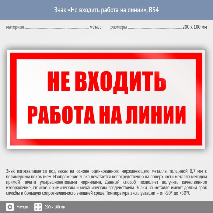 Знак «Не входить работа на линии», B34 (металл, 200х100 мм) в Ачинске купить