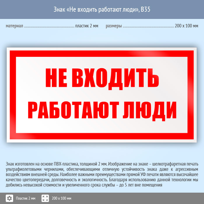 Знак «Не входить работают люди», B35 (пластик, 200х100 мм) в Ачинске купить