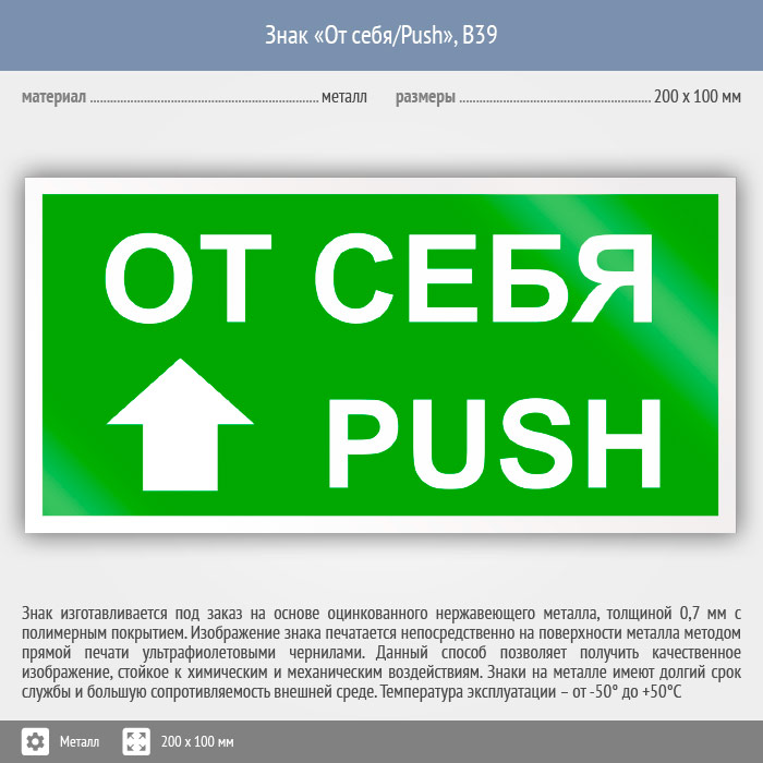 Знак «От себя/Push», B39 (металл, 200х100 мм) в Ачинске купить