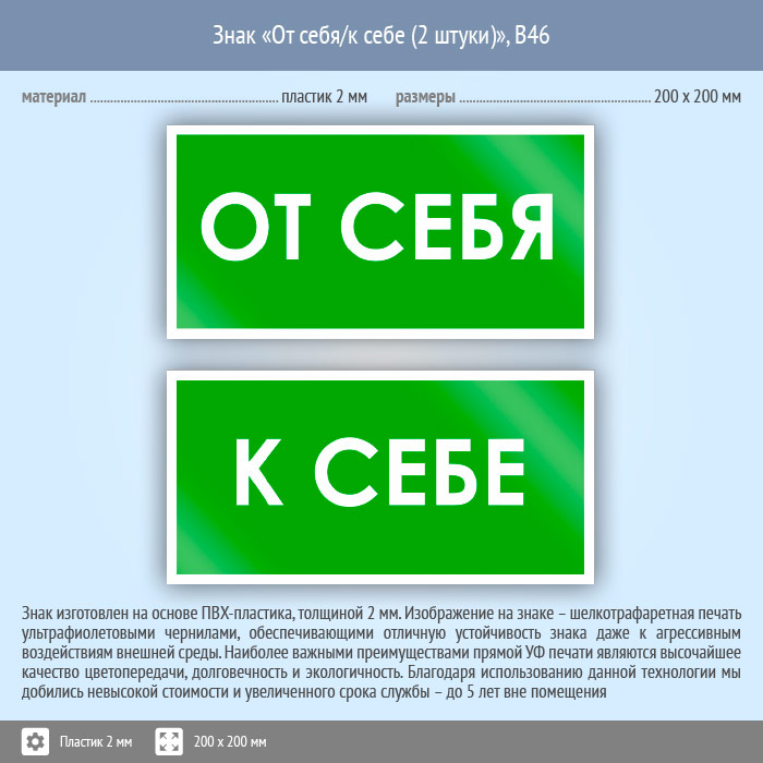 Знак «От себя/к себе», B46 (2 штуки, пластик, 200х100 мм) в Ачинске купить