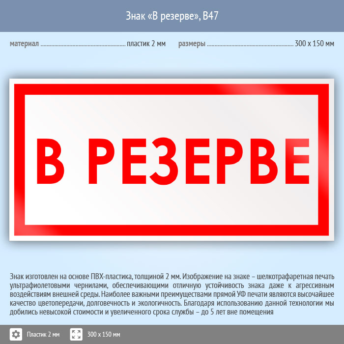 Знак «В резерве», B47 (пластик, 300х150 мм) в Ачинске купить