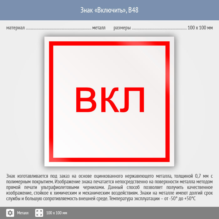 Знак «Включить», B48 (металл, 100х100 мм) в Ачинске купить