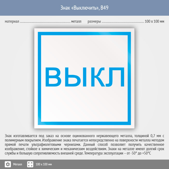 Знак «Выключить», B49 (металл, 100х100 мм) в Ачинске купить