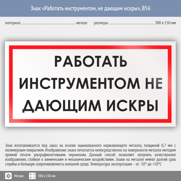 Знак «Работать инструментом, не дающим искры», B56 (металл, 300х150 мм) в Ачинске купить