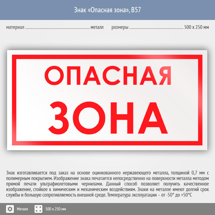 Знак «Опасная зона», B57 (металл, 500х250 мм) в Ачинске купить