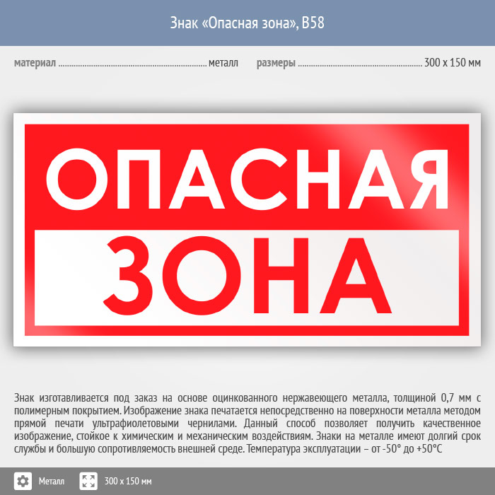 Знак «Опасная зона», B58 (металл, 300х150 мм) в Ачинске купить