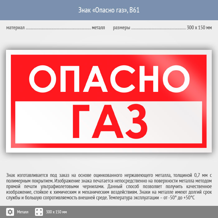Знак «Опасно газ», B61 (металл, 300х150 мм) в Ачинске купить