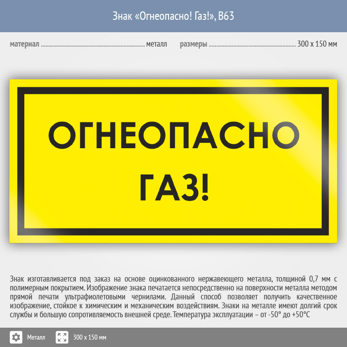 Знак «Огнеопасно! Газ!», B63 (металл, 300х150 мм) в Ачинске купить