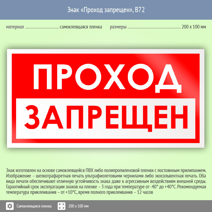Знак «Проход запрещен», B72 (пленка, 200х100 мм) в Ачинске купить