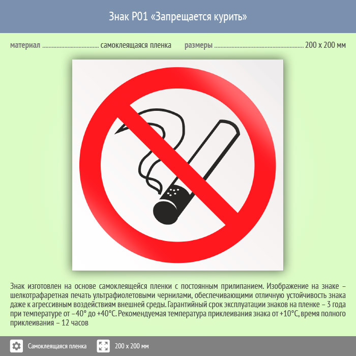 Знак P01 «Запрещается курить» (пленка, 200х200 мм) в Ачинске купить